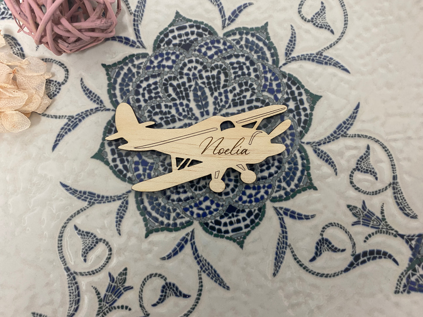Dale un toque especial a tu mesa con este elegante marcasitio de madera en forma de avión. Perfecto para eventos temáticos, bodas, fiestas o reuniones corporativas, este accesorio combina funcionalidad y estilo.