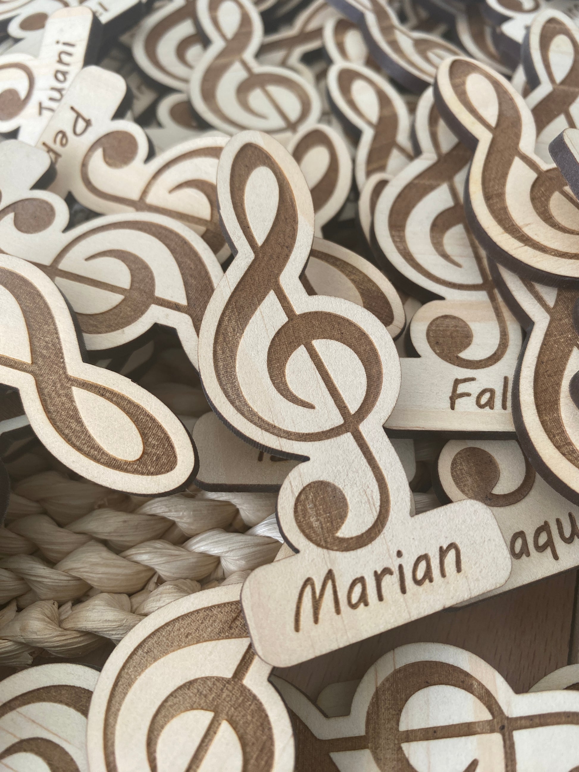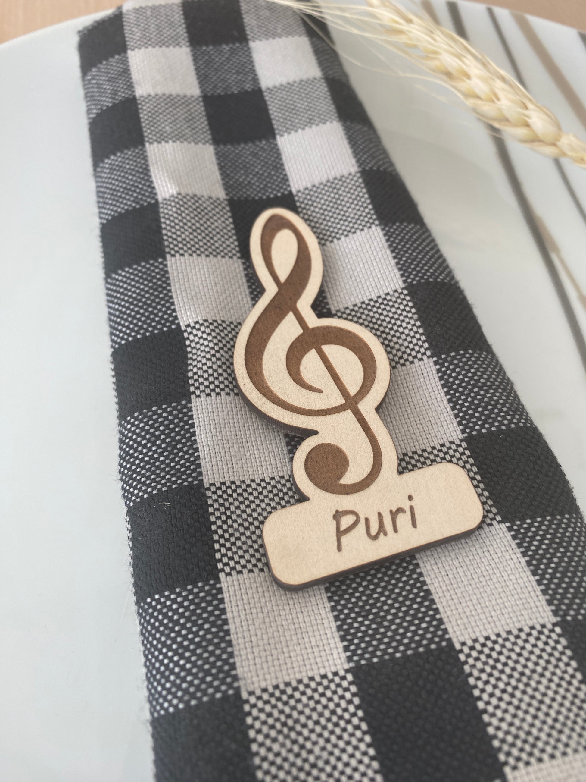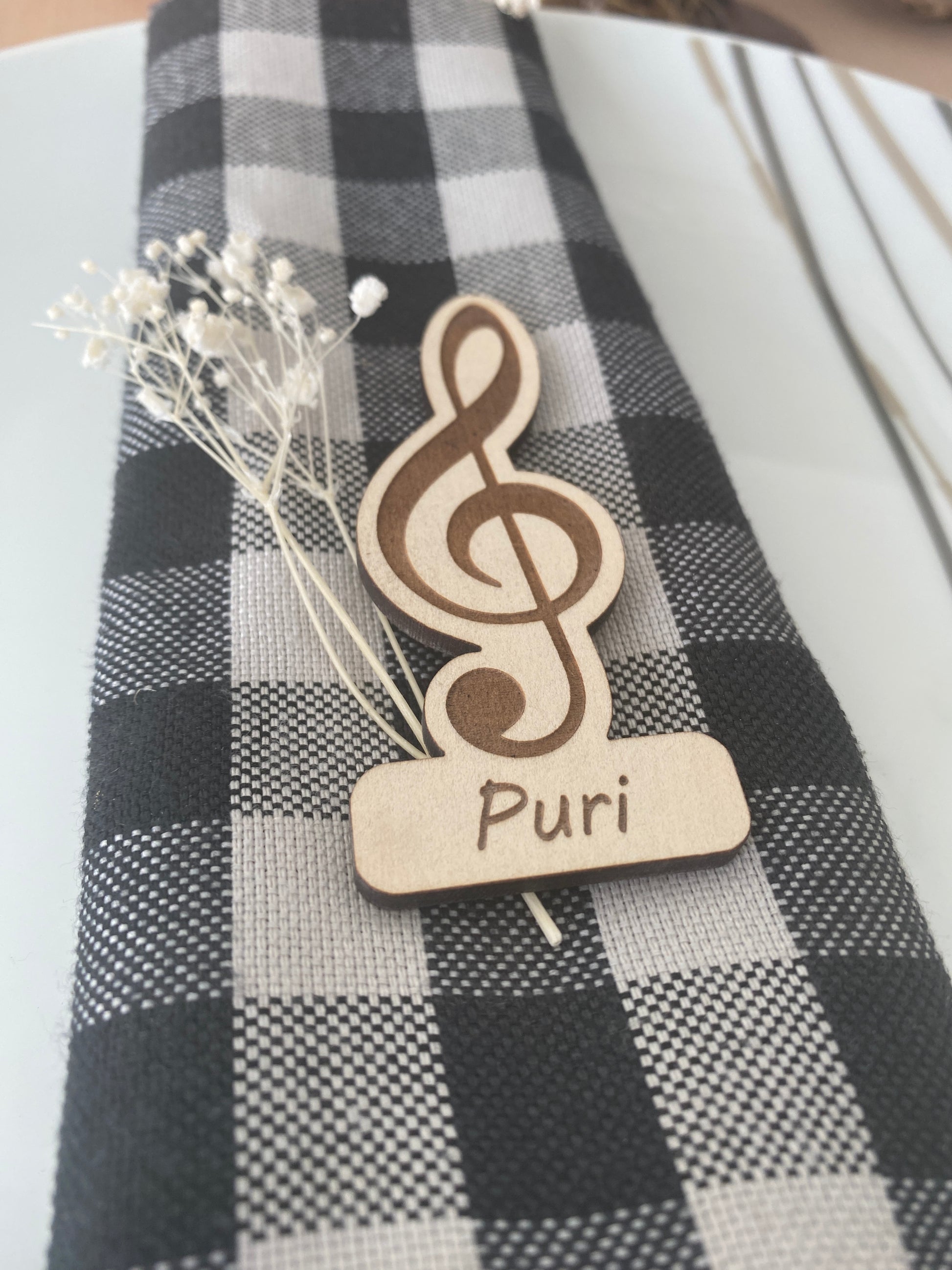 Dale un toque especial a tu mesa con este elegante marcasitio de madera en forma de clave de sol. Perfecto para eventos temáticos, bodas, fiestas o reuniones corporativas, este accesorio combina funcionalidad y estilo.