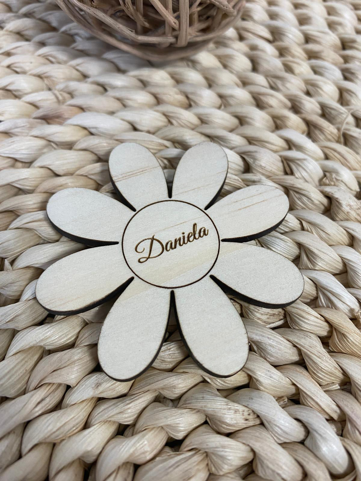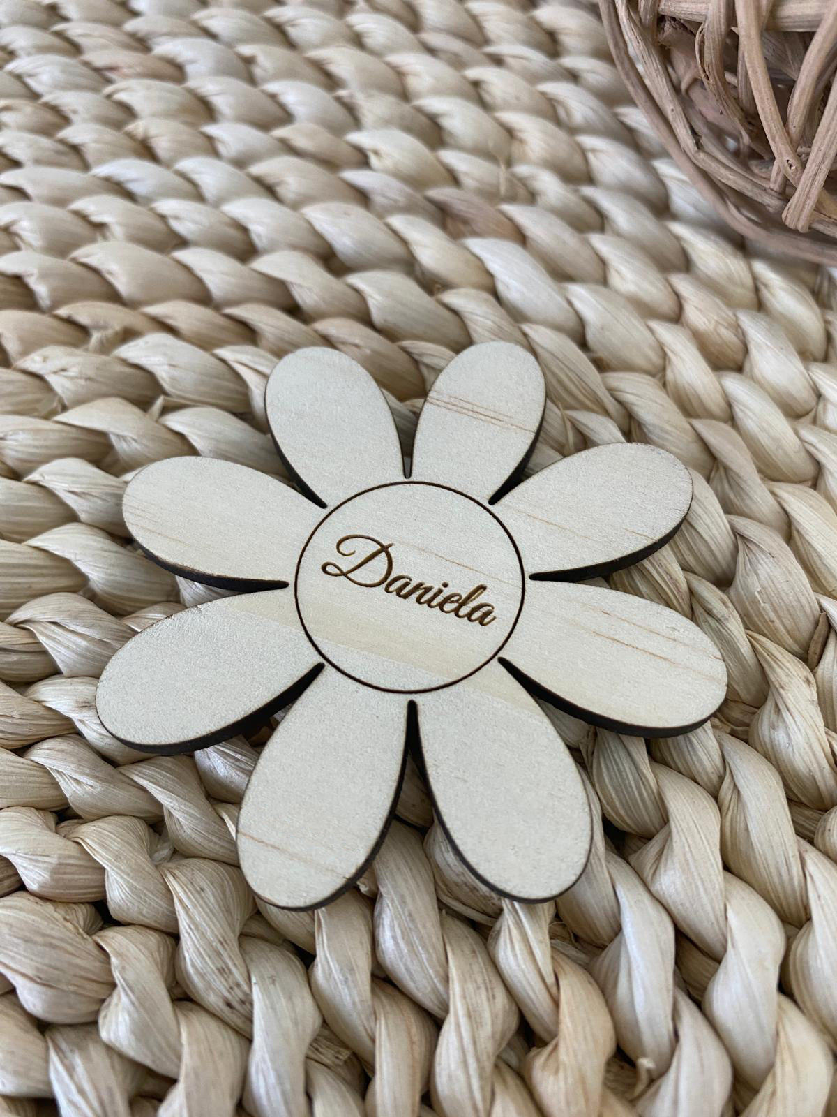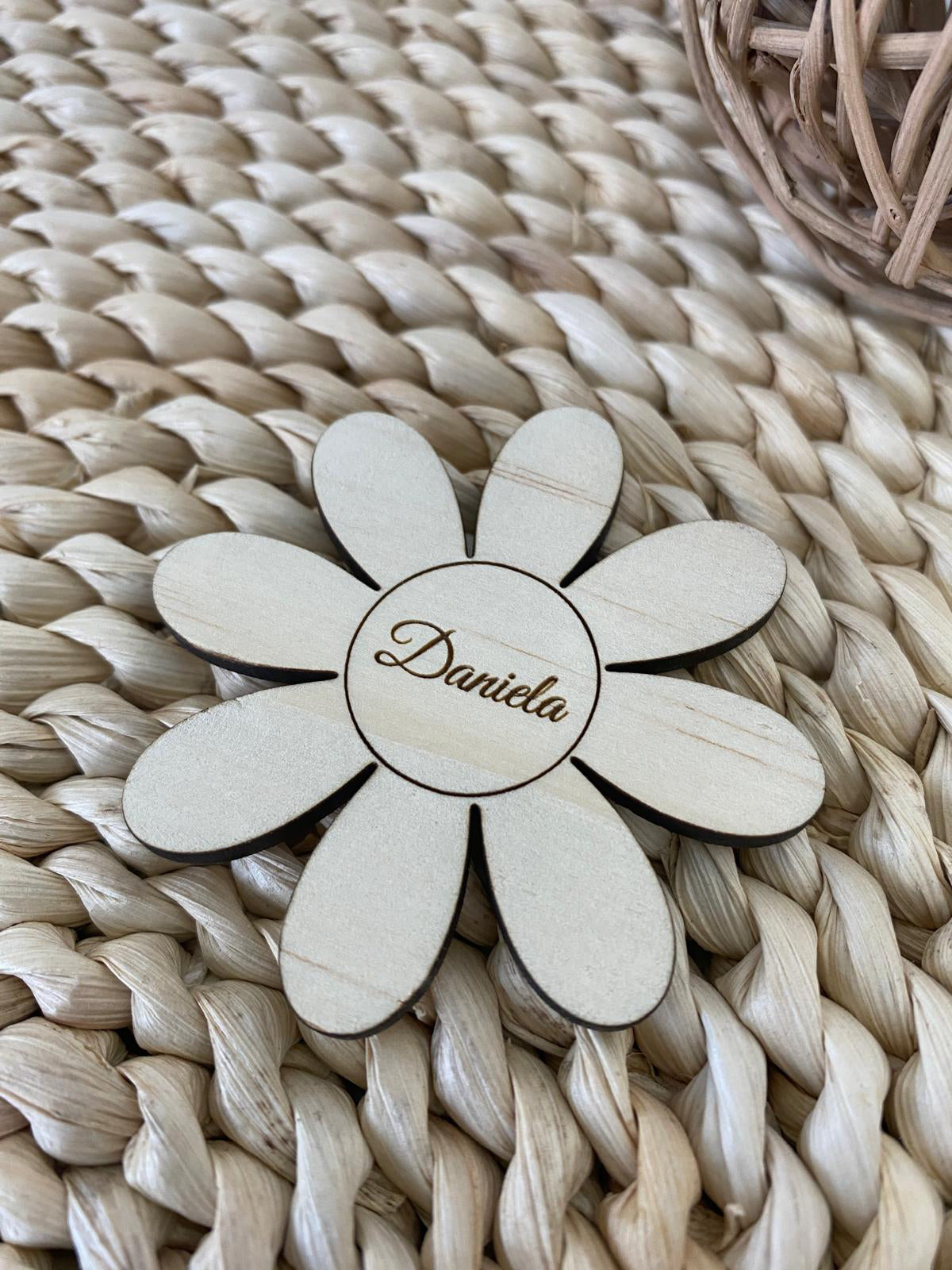 Dale un toque especial a tu mesa con este elegante marcasitio de madera en forma de margarita. Perfecto para eventos temáticos, bodas, fiestas o reuniones corporativas, este accesorio combina funcionalidad y estilo.
