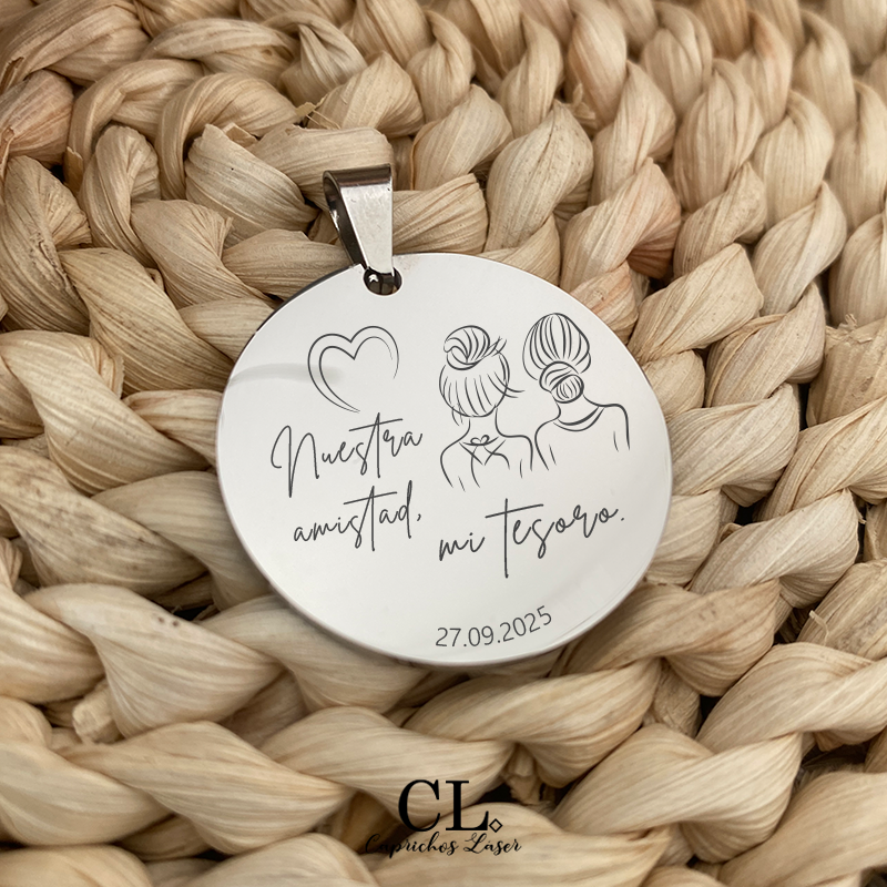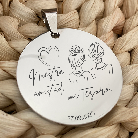 Haz que tu ramo cuente una historia con esta hermosa medalla redonda de 30mm, elaborada en acero inoxidable de alta calidad y grabada a láser para un acabado fino y duradero.
